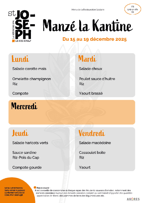 En raison d’un appel national à la grève, la ville de Saint-Joseph informe les parents d’élèves que le service de la restauration scolaire n’est pas assuré dans l’ensemble des écoles ce jeudi 18 septembre. Merci pour votre compréhension.