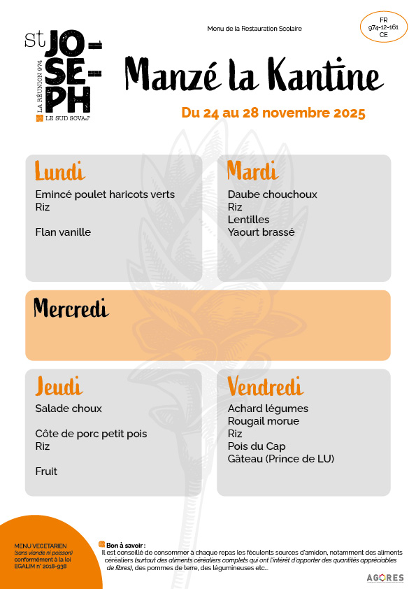 Attention : le menu de la restauration scolaire peut-être modifié en fonction des approvisionnements