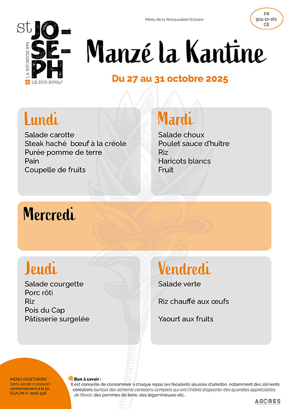 Attention : le menu de la restauration scolaire peut-être modifié en fonction des approvisionnements